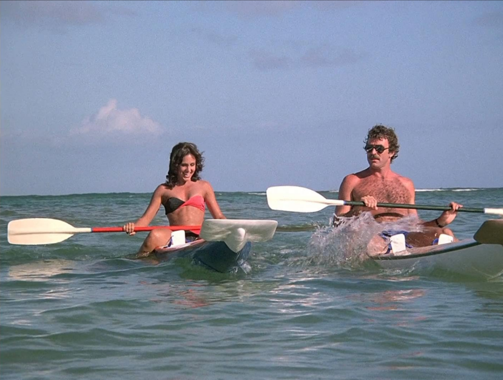 Tom Selleck and Erin Gray in Magnum, P.I.