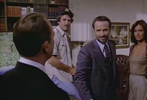 Tom Selleck, Erin Gray, John Hillerman, and Stewart Moss in Magnum, P.I.